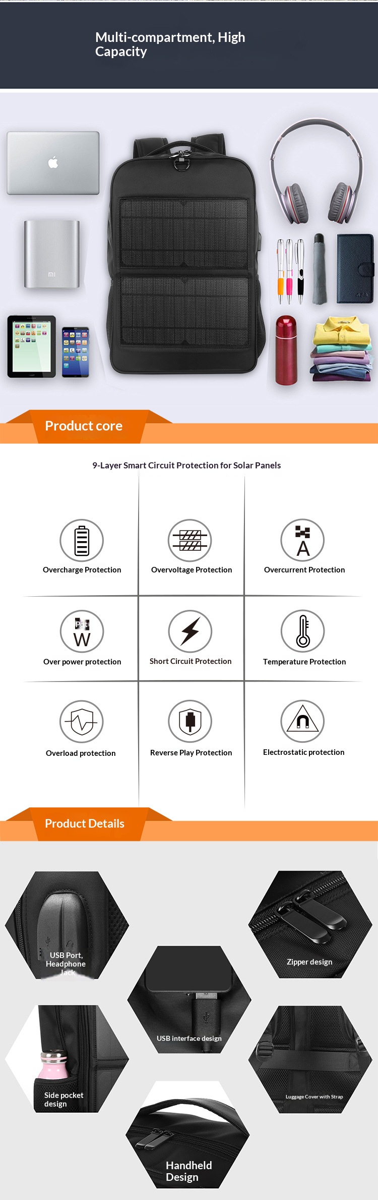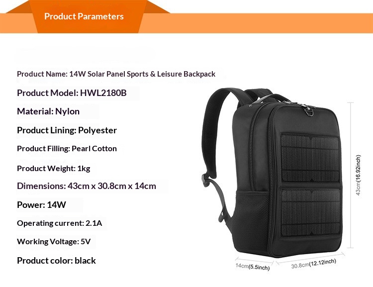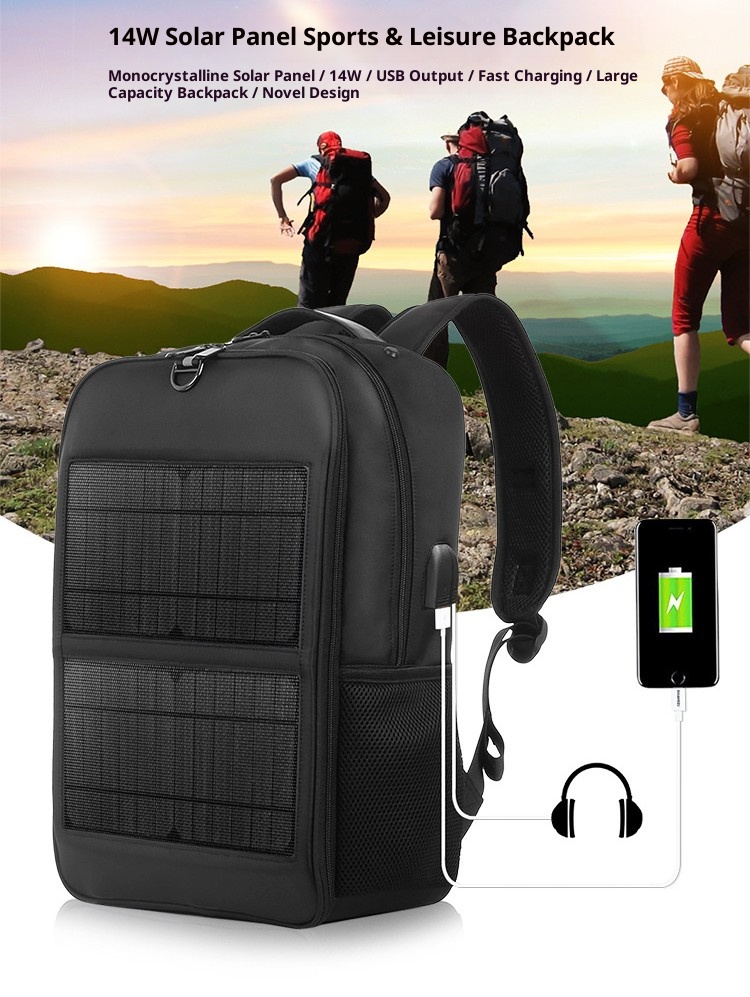 14W solar emergency charging backpack