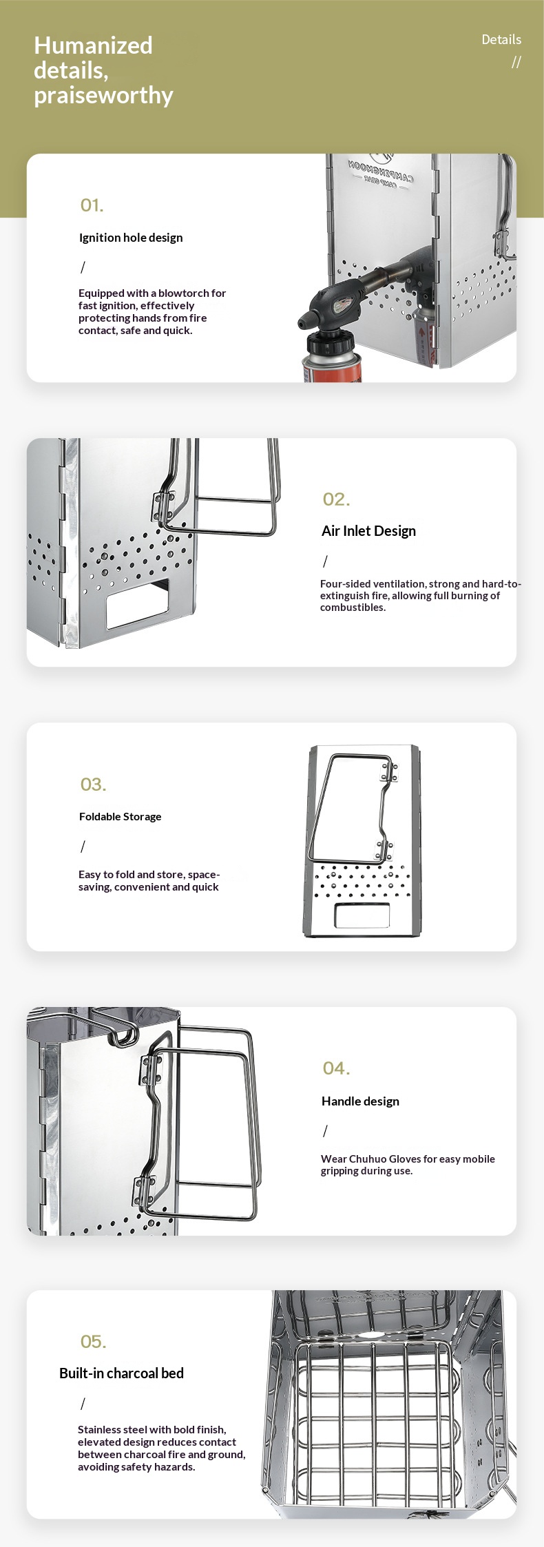 MT-Stainless Steel Folding Firewood Stove