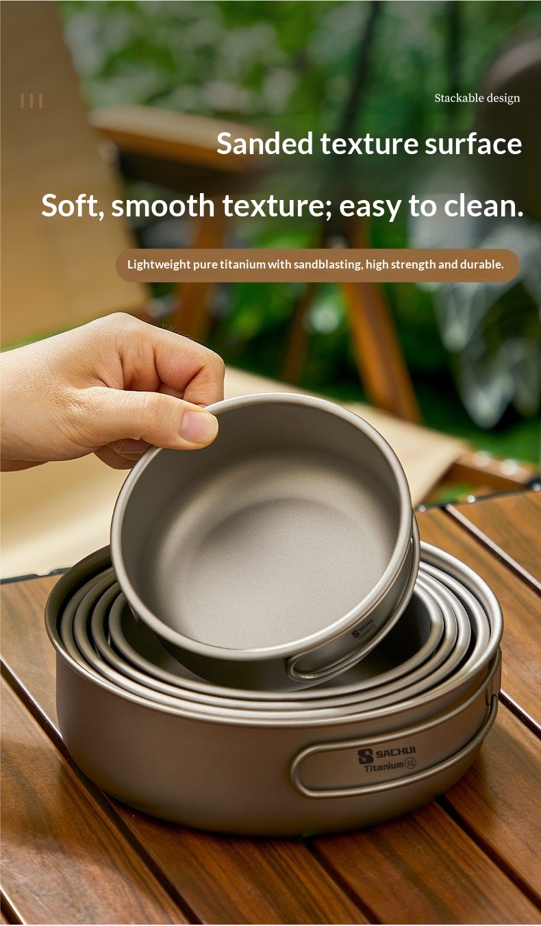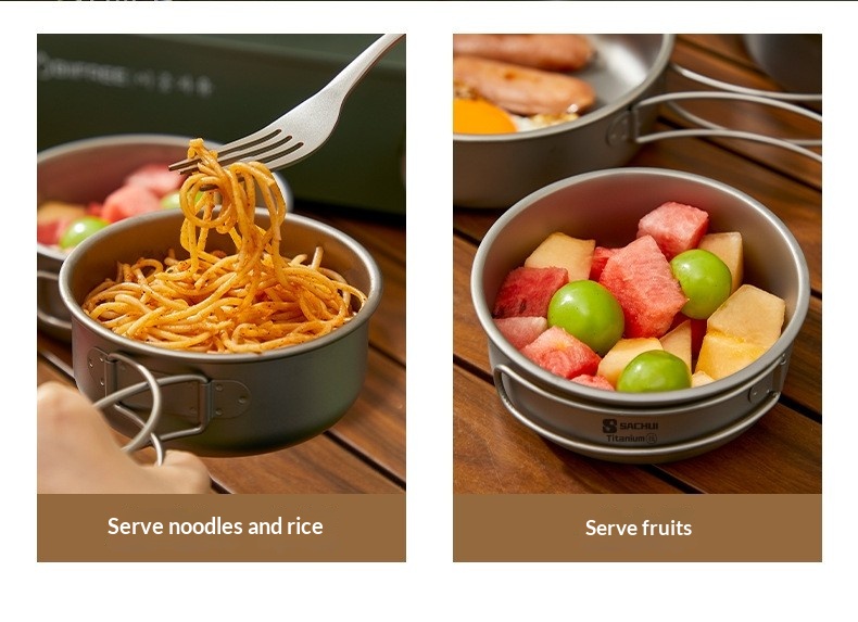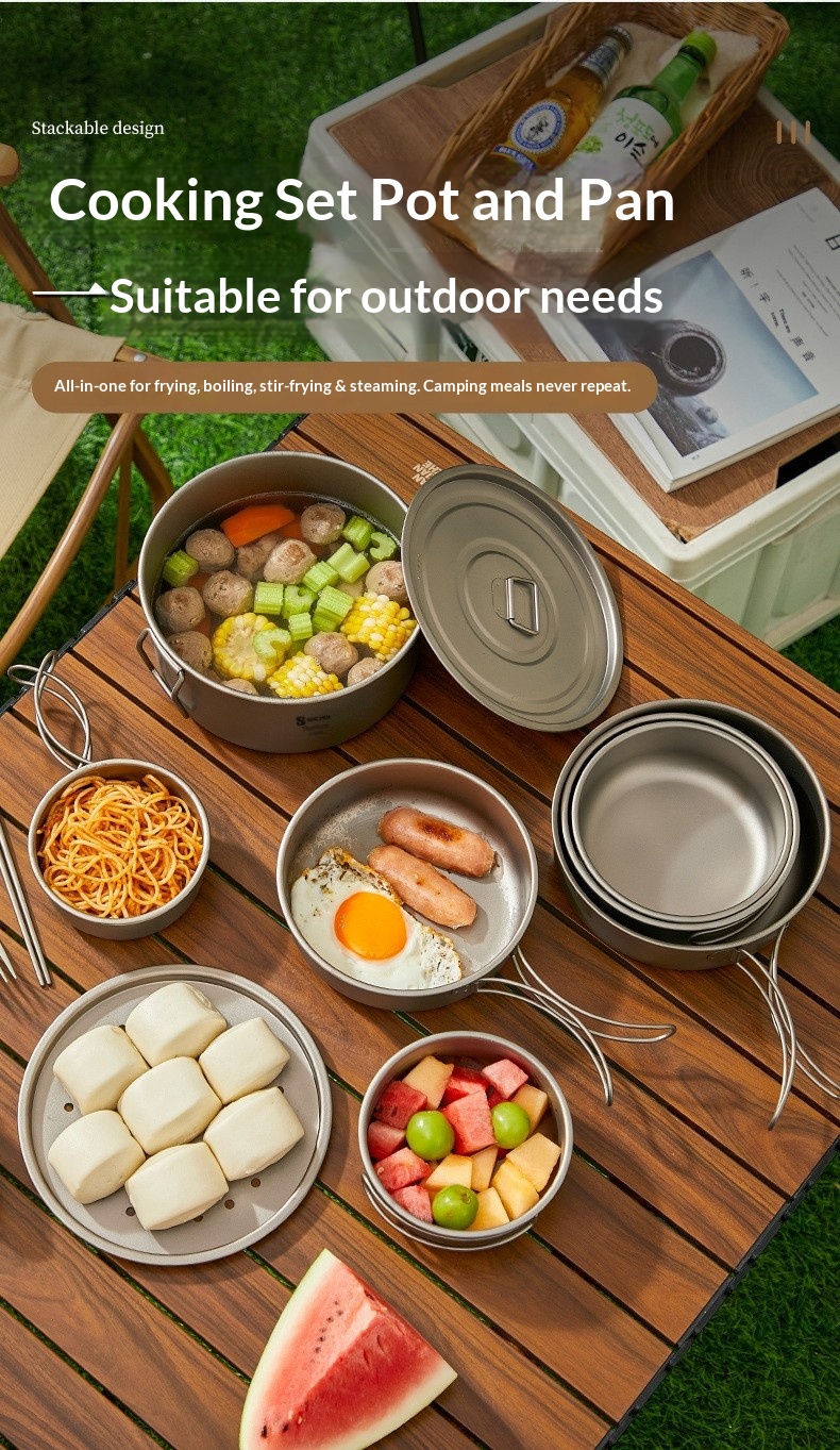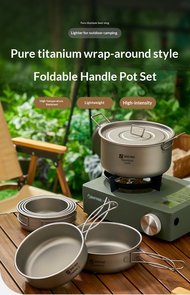 Outdoor camping ultra-light pure titanium alloy folding pot set