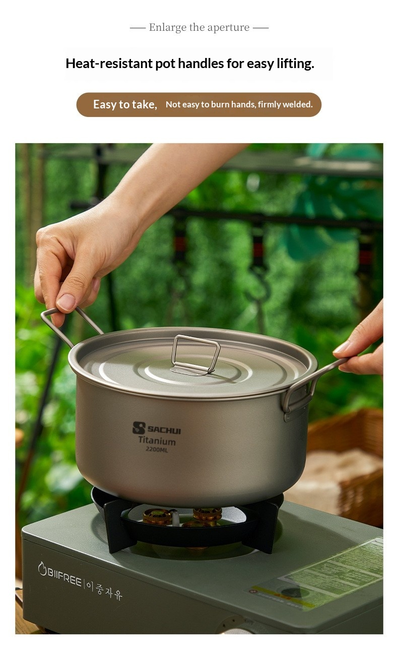 Pure titanium soup pot 2200ml + frying grid + six-piece frying pan set [stackable] with complimentary mesh bag