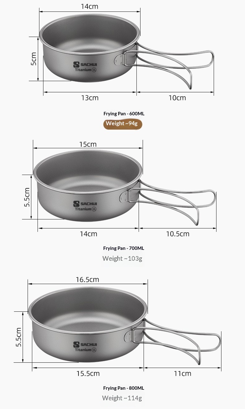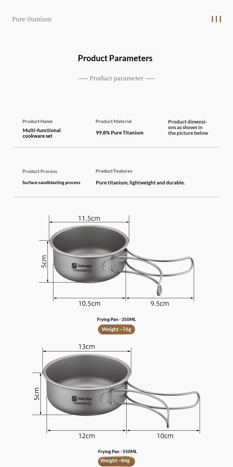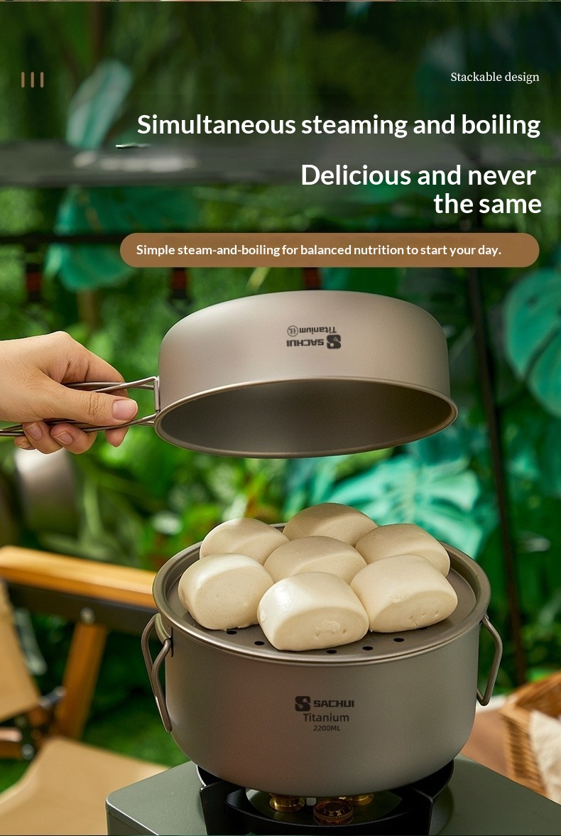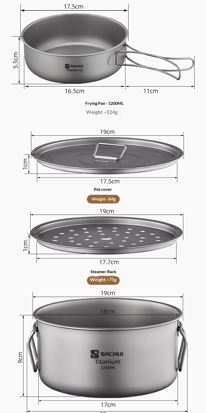 Pure titanium set pot 2200ml + frying grid + 1200ml frying pan