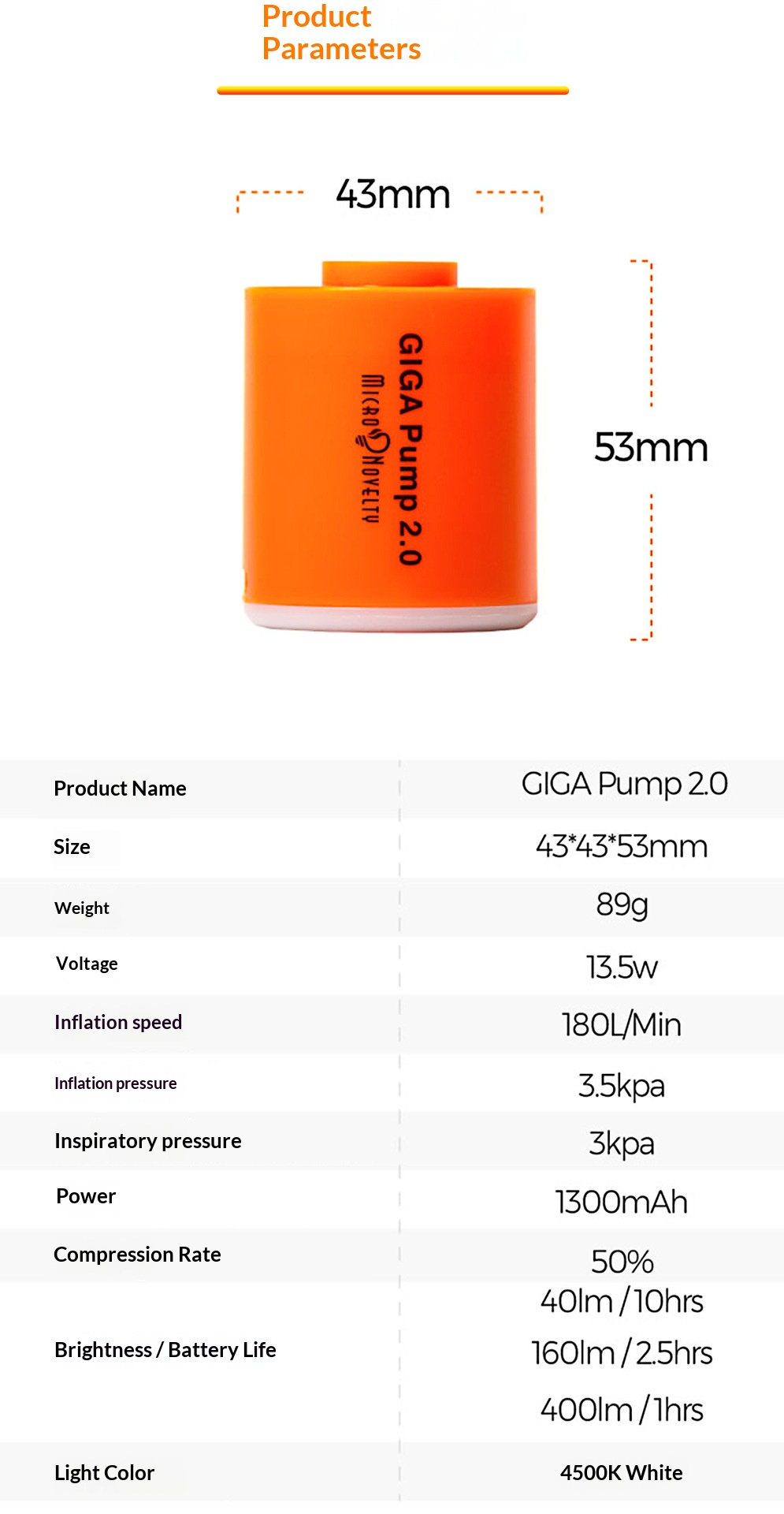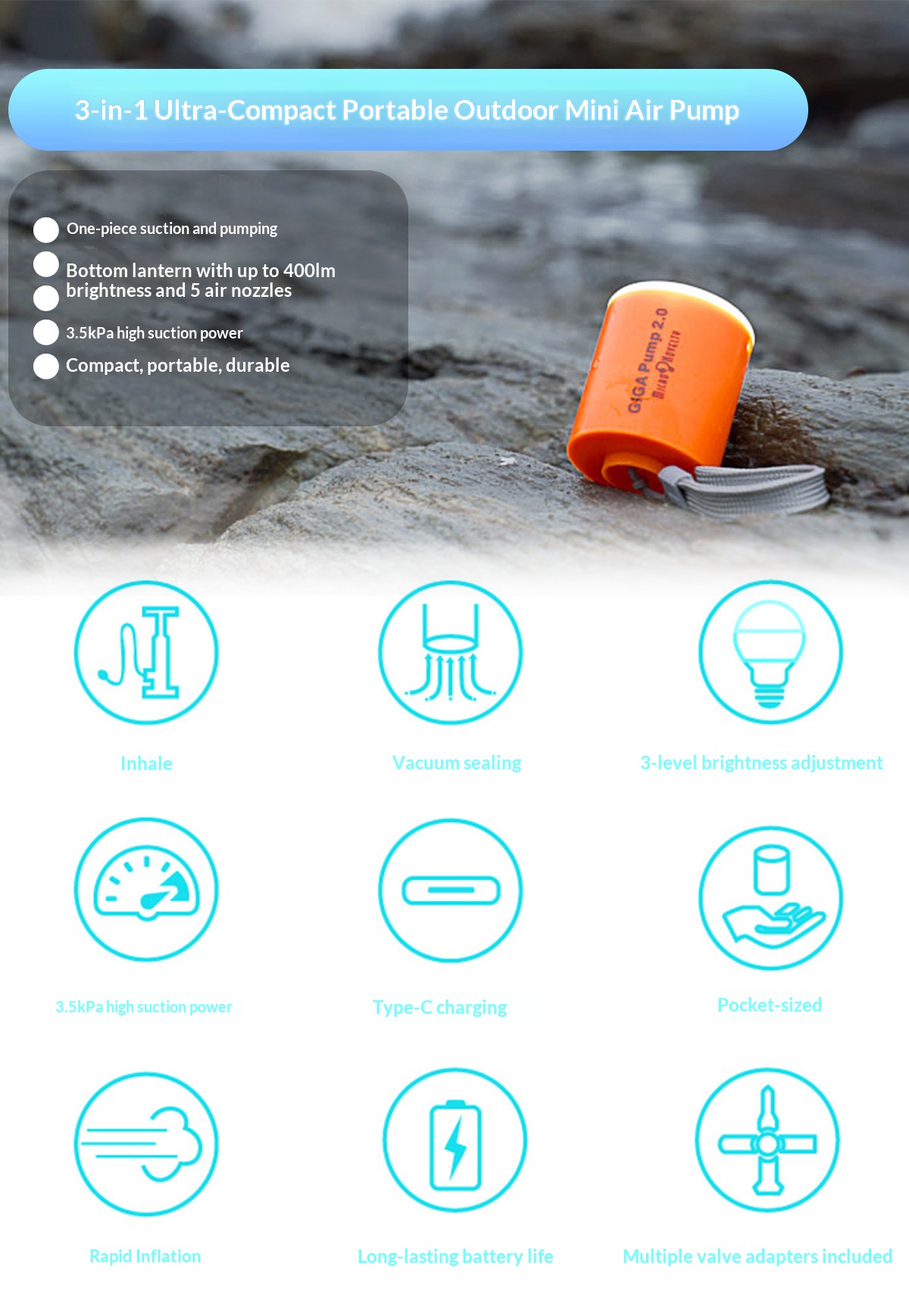 Outdoor mini inflatable pump with light