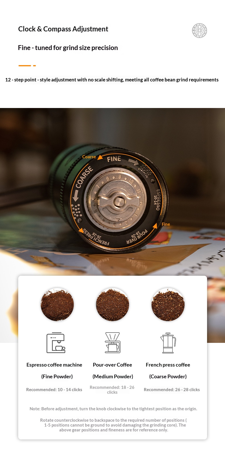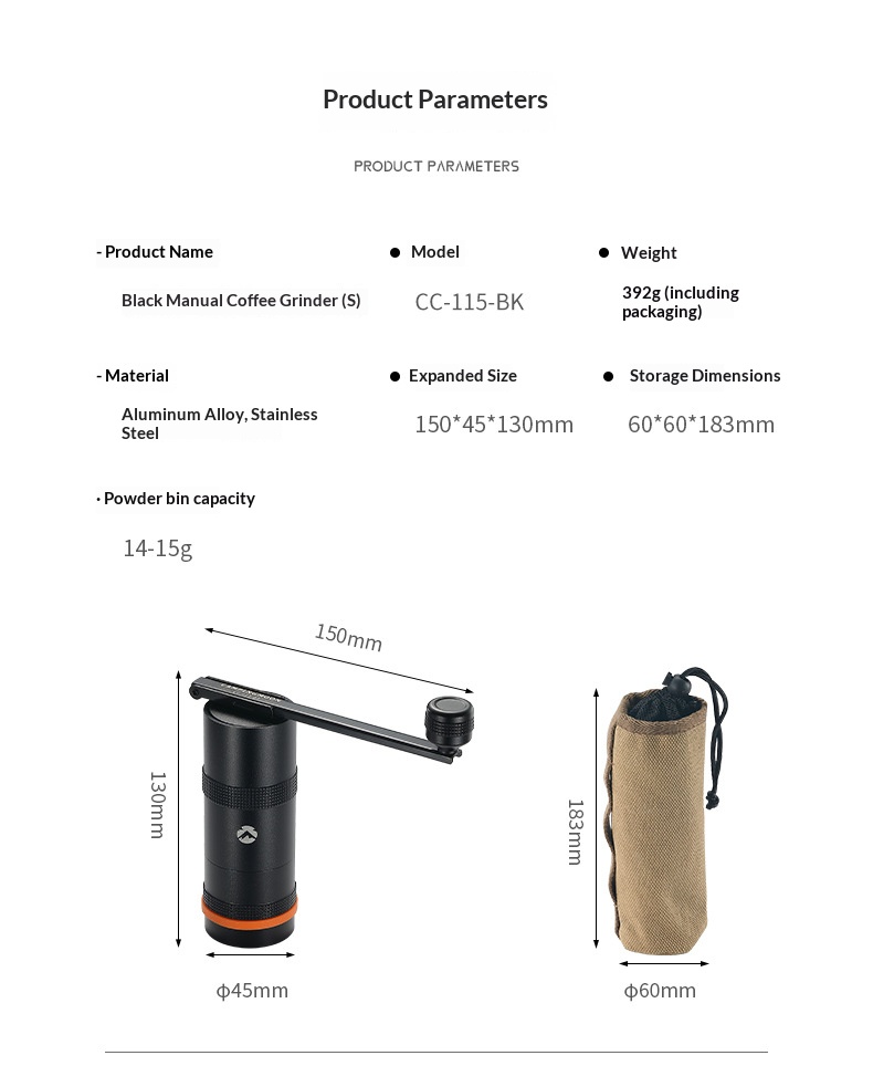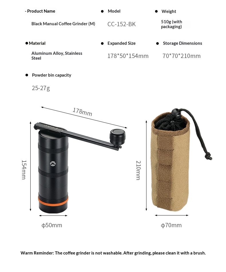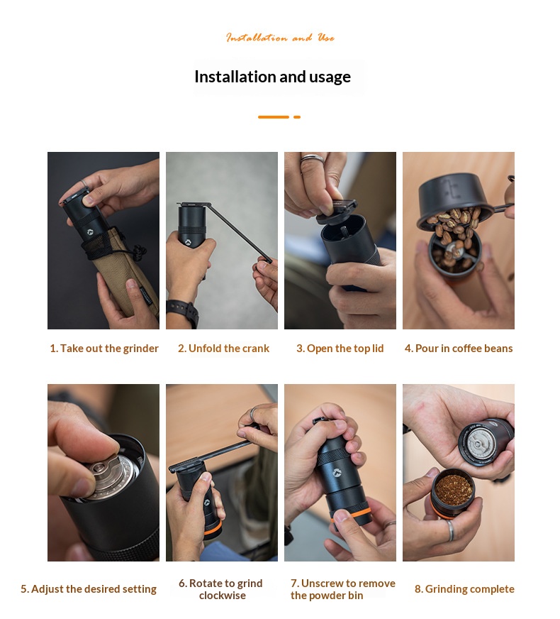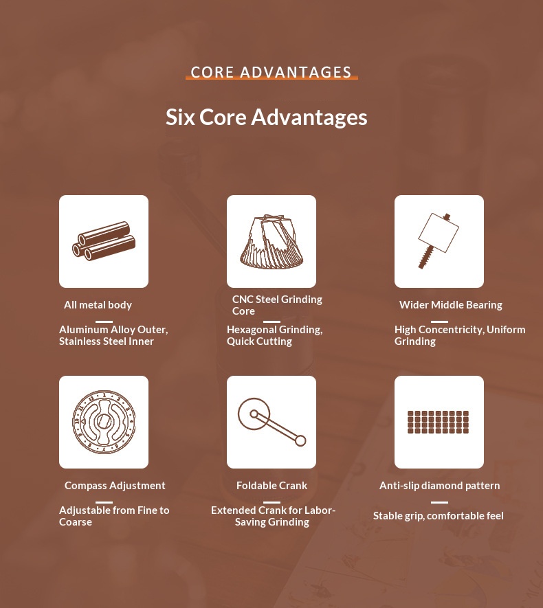 Stainless steel core grinding and folding hand-crank coffee grinder