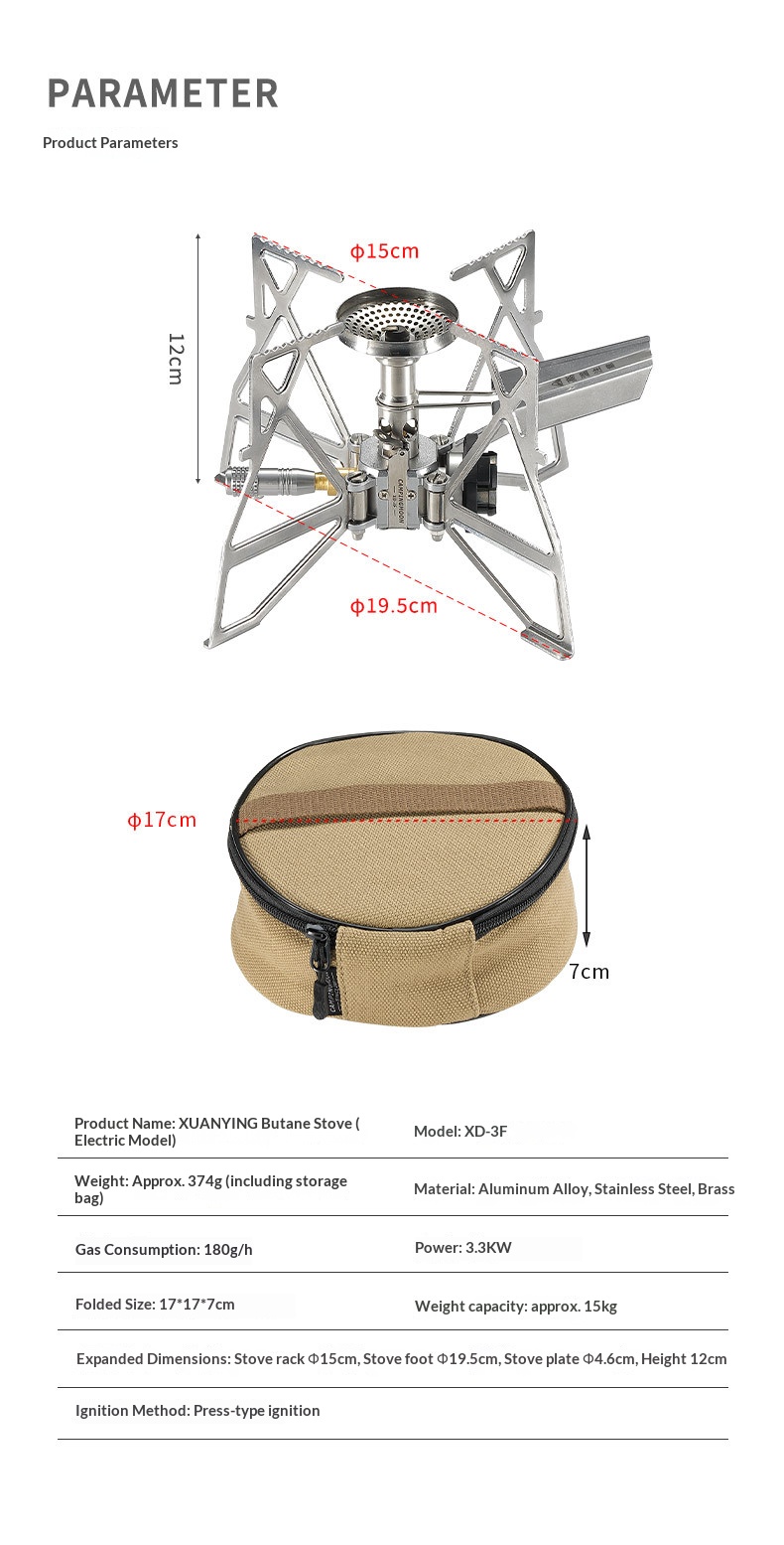 XD-3F Electronic Ignition Butterfly Burner Cassette Stove Top